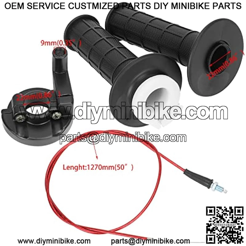 Throttle Kit Size: The inner cable measures 50 inches/127cm and the outer conduit measures 45 inches/114cm. Fits for 7/8″ ( 22mm) handle bar
