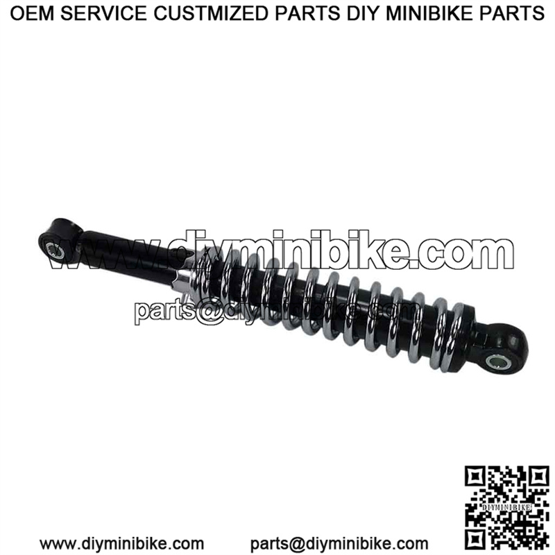 Mechanical shock absorber. Max compression: 2″ Total load compression: 450lbs Eye to eye: 12″ Hole ID: 3/8″ Chrome plated spring