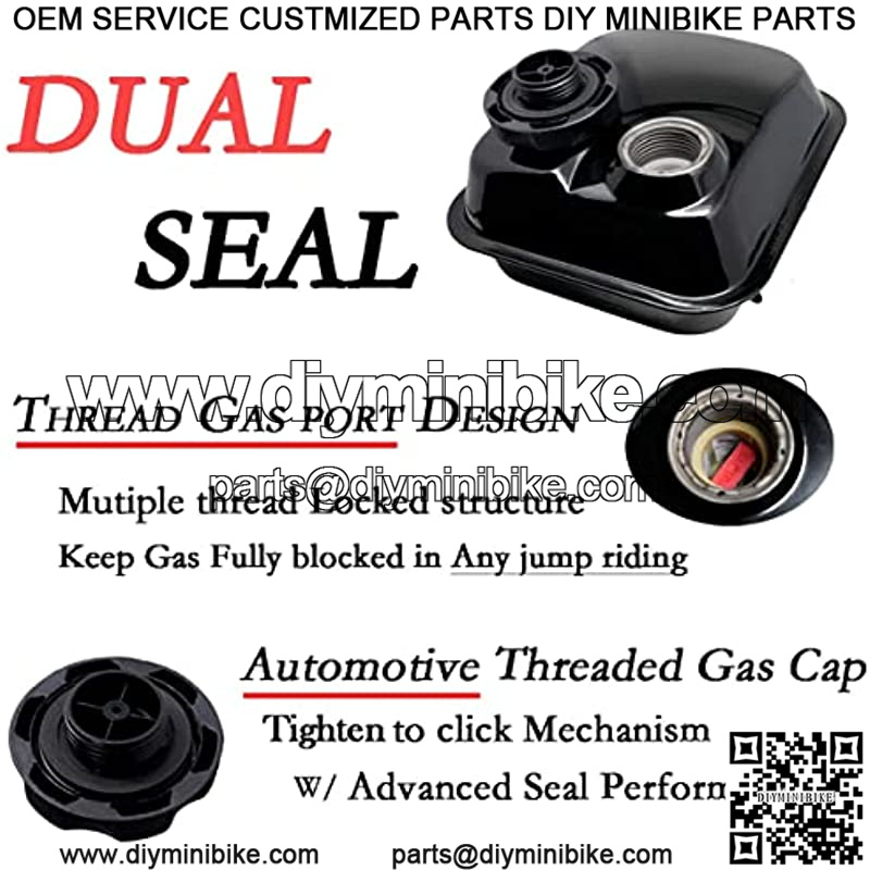 Capacity: 0.81 Gallon; In order to tackle the root causes of leakage (bayonet fuel port type design tend to leak fuel) , We Upgraded our New version fuel tank to Threaded Design (with Screw on Gas Cap Tighten to click & Vent Hole) to proof leakage.
