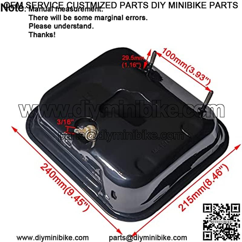 Painted with Anti-corrosion spray paint Outside, Pickling & Phosphating Inside the fuel tank; Ensure Long Service life From Contamination & Fuel corrosion.