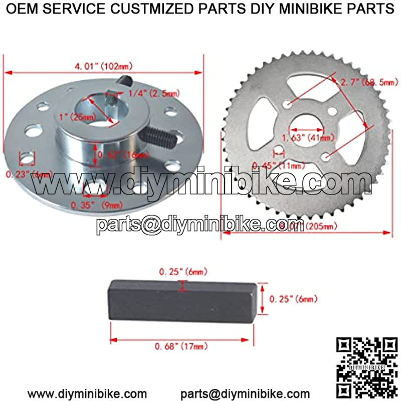 Fitment: 4″ sprocket brake hub with 1″ bore & 1/4″ keyway is fit for most predator 212cc 196cc 6.5hp mini bike go kart cart dune buggies drift trike