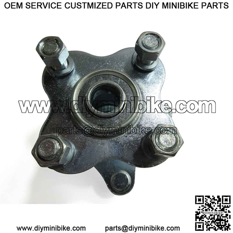 One flange has a 90mm (3.543″) bolt pattern for the steel wheel and the other is 4 bolt pattern on a 2-7/8″ bolt circle to accommodate most standard sprockets,
