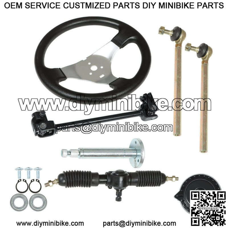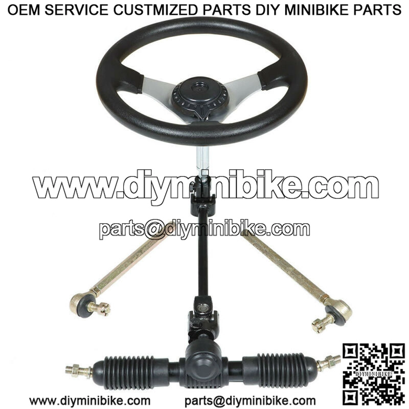 Steering Wheel Steel Kit Gear Rack Pinion Adjustable Shaft Set 110cc Go Kart ATV