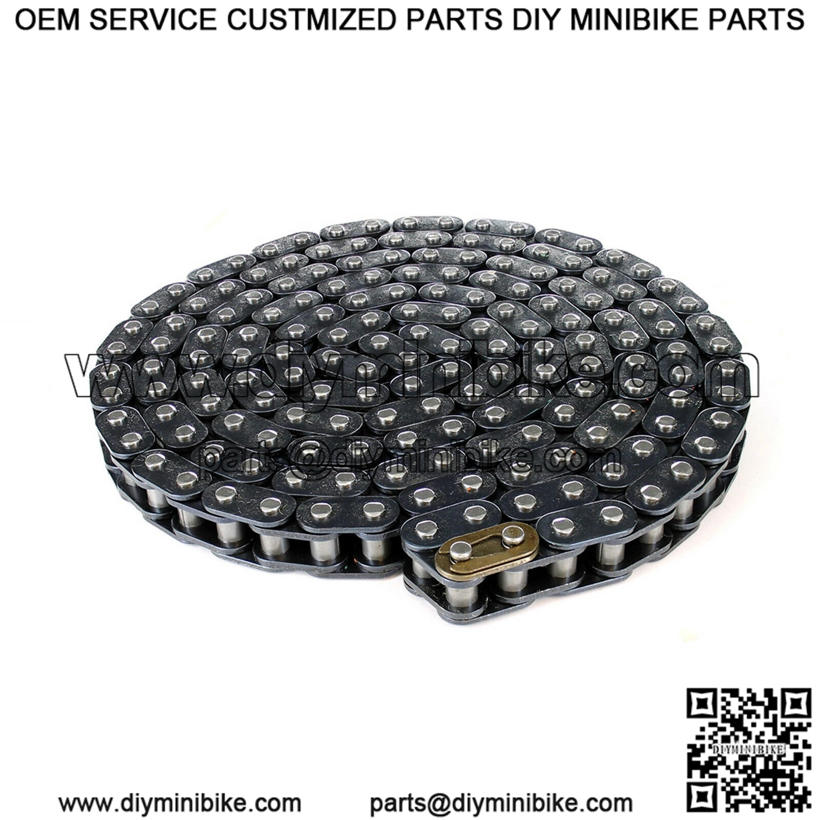 Minimoto / Pocket bike 8mm / T8F gold or iron drive chain in 1m 2m 3m 4m 5m lengths Each chain length comes with a free gold split / break link. Additional chain split links can be purchased from our store 8mm or T8F is the common size for Chinese Midimotos / Pocket bike models including Midi Petrol / Gas Electric Quad / ATV, Mini Dirtbike, Petrol Gas Scooters, Midi Bikes A durable pre formed iron chain electroplated gold to fit Midimoto / Pocket bikes, Midi Quads / ATV’s and Petrol / Gas Scooters, Midi Electric Bikes, Gokarts, Midibikes