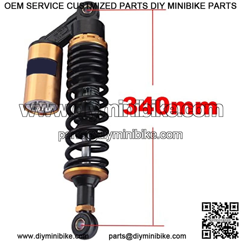 Motorcycle shock absorber universal fit for most vehicles, like Honda/Yamaha/Suzuki/, etc. The diameter of the round hole at the bottom is 12mm. Fit bikes with shock absorbers of 340mm eye to eye distance.