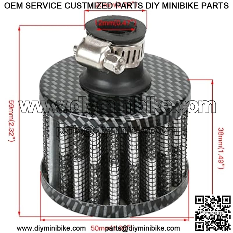 PACKAGE INCLUDED??2 x black air filter,1 x 12mm(0.47??) air filter,4 x cable tie,2 x .037??main jet,1 x breather tube