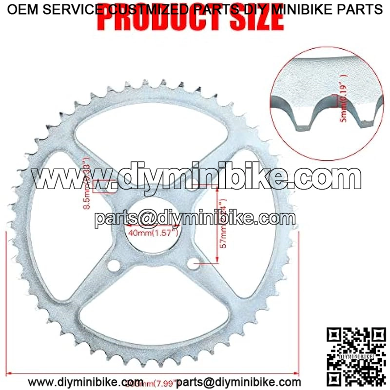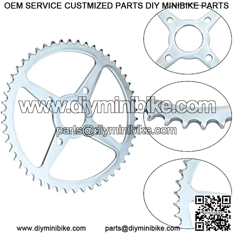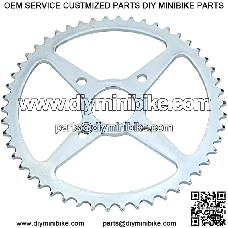 PLAYING AN IMPORTANT ROLE??the rear rdrive sprocket is an important part of the drive system,ans make the chain drive more stable, higher efficiency.The chain sprocket has 50 teeth,sized for 420 chain and it has 4 inner mounting holes for easy to install.It can perfectly replace the old one.And this chain sprocket is versatile and fits most 212cc mini bike.