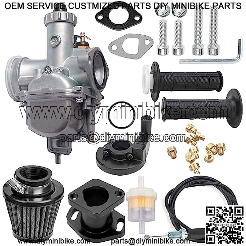 The VM22 26MM Carburetor not only replaces the stock carburetor but it elevates your Predator 212CC 196cc CT200U KT196 Moto Mini Bike Race Go Kart 6.5HP Baja Warrior’s performance. The 38mm air filter kit included effectively filters out dust and dirt, permitting a larger capacity of clean, dust-free air to enter the carburetor, leading to greater horsepower and smoother operation