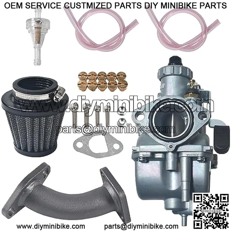 Package included: 1*Performance Carburetor, 1*silver Curved Manifold ,1*Main jet Kit,1*38mm Air filter; 1*Fuel filter