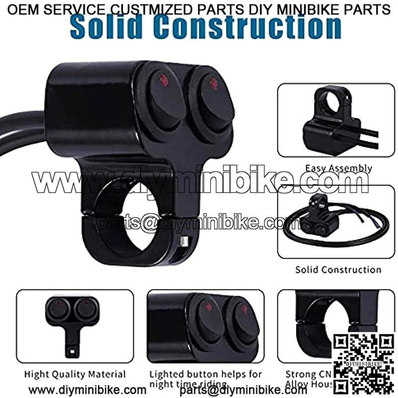 Universal switch, fits for handlebar in diameter: 22-23mm/0.78″-0.90″, used on DC 12V electrical system.For your convenience, a 2.5mm hexagon wrench is also specially equipped.