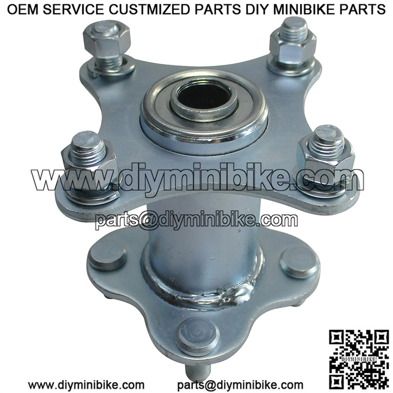 One flange has a 90mm (3.543″) bolt pattern for the steel wheel and the other is 4 bolt pattern on a 2-7/8″ bolt circle to accommodate most standard sprockets,