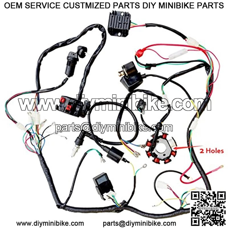 Wiring Harness kit Wire loom | Complete Electrics Stator Coil CDI for 150cc-300cc ATV QUAD 4 Four wheelers Go Kart Dirt Pit bikes (2 fixing holes)