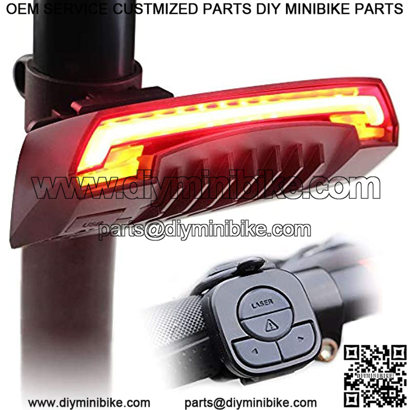 ??WIRELESS REMOTE CONTROL??Installed it on the handlebar, easy to switch the lighting modes of the bike rear light by press the four buttons on the controller. Total six lighting modes: (Steady with full brightness/ Fast Flash/ Flowing Light/ Turn Left/ Turn Right/ Ground Line).